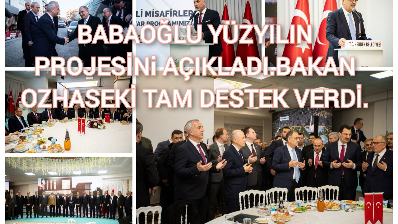 Salonda ve salon dışında adeta izdihamın yaşandığı programda konuşan Başkan Babaoğlu, “Hendek’te ‘Yüzyılın Projesi’ni sizlere ilan etmekten gurur duyuyorum. Mevcut otopark alanından itibaren, eski Anadolu lisesi ve duraklar, Aile Sağlığı Merkezi, Rasimpaşa Cami çevresi, Atatürk Stadyumu ve Süleyman Seba Spor Kompleksi ile 200 dönüm alanı kapsayan projeyi bakanlığımızla birlikte hayata geçireceğiz” dedi.