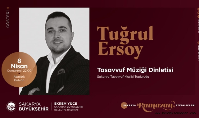 Hafta sonu ise 8 Nisan Cumartesi günü tasavvuf müziğinin önemli isimlerinden Tuğrul Ersoy, Sakarya Tasavvuf Musiki Topluluğu ile beraber Kitapçılar Sokağında sahne alacak. Tasavvuf müziği dinletisi saat 22.00’da başlayacak. 9 Nisan Pazar günü ise Tiyatro Sanatçısı Seçkin Bayramoğlu ‘Habib Baba’ isimli meddah hikayesiyle bir gölge oyunu sunacak. Etkinlik 20.30’da başlayacak. Kültür ve Sosyal İşler Dairesi Başkanlığı tarafından yapılan açıklamada, hafta sonu düzenlenecek kültür sanat etkinliklerine tüm vatandaşlar davet edildi.
