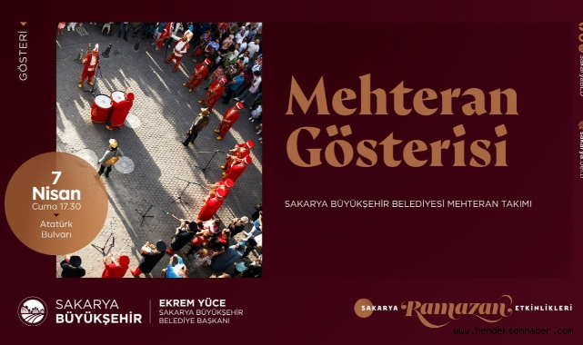 Sakarya Büyükşehir Belediyesi tarafından her yıl geleneksel olarak kurulan Kitapçılar Sokağı’nda düzenlenen Ramazan Kültür Sanat Etkinlikleri mehter gösterisi, dinleti ve gölge oyunuyla hafta sonu vatandaşların buluşmada adresi olacak. Ramazan etkinlikleri kapsamında her Cuma olduğu gibi 7 Nisan Cuma günü saat 17.30’da Büyükşehir Mehter takımı gösteri sunacak. Hafta sonu dinleti ve gölge oyunu var