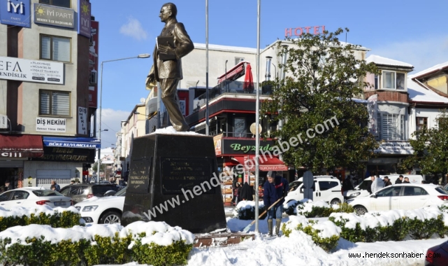 Hendek’te karla mücadele eden belediye ekipleri, sadece yolları değil, ilçenin manevi değerlerini de sahipsiz bırakmadı. Atatürk Anıtı’nı kardan temizleyen personelin duyarlılığı vatandaşlardan büyük alkış aldı.