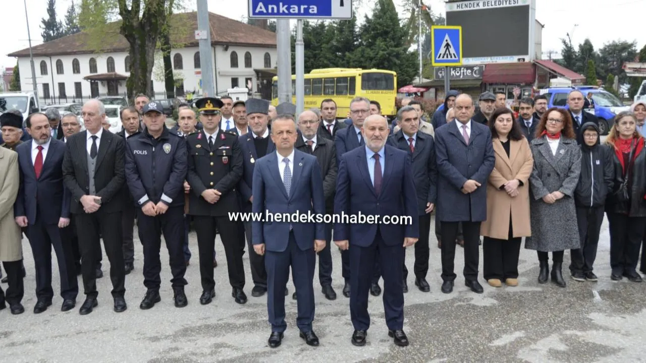 Törenlerin ilk durağı Hendek Cumhuriyet Meydanı oldu. Atatürk Anıtı önünde gerçekleştirilen çelenk sunma törenine; Hendek Belediye Başkanı İrfan Püsküllü, İlçe Emniyet Müdürü Kemal Aydınoğlu, İlçe Jandarma Komutanı J. Ütğm. Bahtiyar Beycur, İlçe Milli Eğitim Müdürü Murat Çekiçcioğlu, siyasi parti temsilcileri, askeri erkan, gaziler, kurum müdürleri, STK temsilcileri, ve çovatandaşlar katıldı.