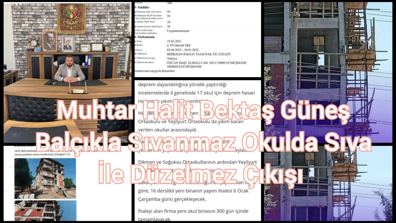 Muhtar Bektaş, "İhalesi çıkmış Yeşilyurt Ortaokulu'nun zamanın il milli eğitim müdürü ve ilçe milli eğitim müdürü bu olaydan sonra ne olduğuna bir bakalım. Hepsi suçludur demiyorum fakat kurunun yanında yaşta yandı. İhalesi çıkmış Yeşilyurt Ortaokulu'nun, bölgemizdeki 5 mahalle ve 4000'in üzerindeki nüfusunu hiçe sayarak el altından okulun yerinin değiştirilmesi Hendek Kemaliye Mahallesi'ne kaydırılmış olması büyük tepkilere sebep olmuştu. Bu inşaattan, bu binadan kimseye hayır gelmez." diyerek, okul inşaatı olayı ile alakalı tepkisini dile getirdi.