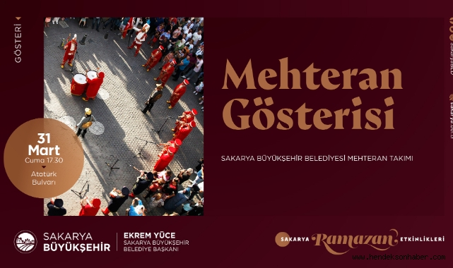 Sakarya Büyükşehir Belediyesi tarafından her yıl geleneksel olarak kurulan Kitapçılar Sokağı’nda düzenlenen Ramazan Kültür Sanat Etkinlikleri mehter gösterisi, dinleti ve gölge oyunuyla Hafta Sonu vatandaşların buluşma adresi olacak. Ramazan etkinlikleri kapsamında 31 Mart Cuma günü Büyükşehir Mehter takımı tarafından iftar öncesi saat 17.30’da mehteran gösterisi sunulacak. Hafta sonu dinleti ve gölge oyunu var