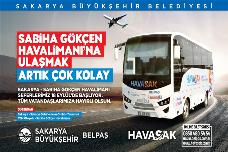 Son model 5 araçlık filo ile hizmet sunmaya başlayacak ‘HAVASAK’ Sakarya Büyükşehir Belediyesi Şehirlerarası Otobüs Terminali’nden kalkış yapacak, son durakları ise Sabiha Gökçen Havalimanı olacak. Şehir genelinde Kent Meydanı, Terminal, Kampüs, Mavi Durak, Çark Caddesi, Şal Sokak ve Erenler Patates Hali ile Sabiha Gökçen Havalimanı olmak üzere toplam 8 şubede bilet kesim noktaları olacak. Online bilet satışları ise 0850 480 34 54 numarası ya da havasak.com.tr ile belpas.com.tr adresinden yapılacak