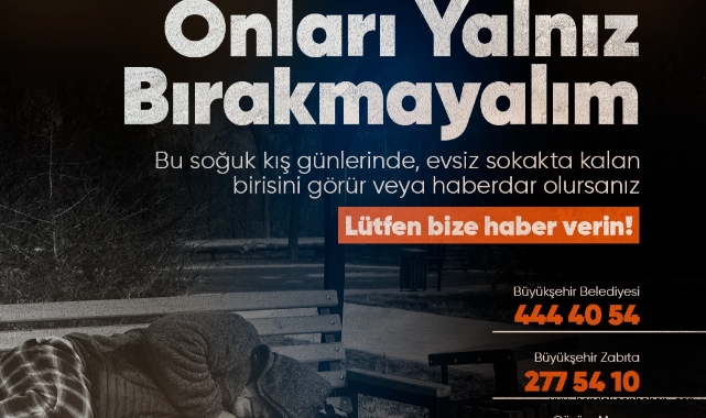 “Duyarlı vatandaşlarımızdan destek bekliyoruz”Açıklamanın devamında vatandaşlara çağrı yapılarak, “İhtiyaç sahiplerine daha hızlı ve sağlıklı ulaşım için duyarlı hemşerilerimizin desteğini bekliyoruz. Vatandaşlarımız Büyükşehir Belediyesi 444 40 54, ALO 153 Çözüm Masası ve ALO Zabıta 277 54 10 telefon numaralarını arayarak bizlere ulaşabilirler. Gönülleri birlikte ısıtmak için ihtiyaç sahibi kardeşlerimizin bilgilerini bizimle paylaşabilirler” ifadelerine yer verildi.