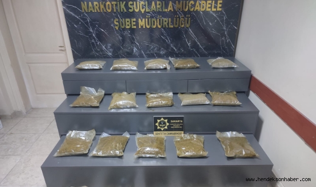 Sakarya'da polis ekipleri tarafından 4 şüpheli şahsın üzerlerinde ve adreslerinde yapılan aramada 8 kilo 910 gram Sentetik Cannabinoid uyuşturucu maddesi ele geçirildi.